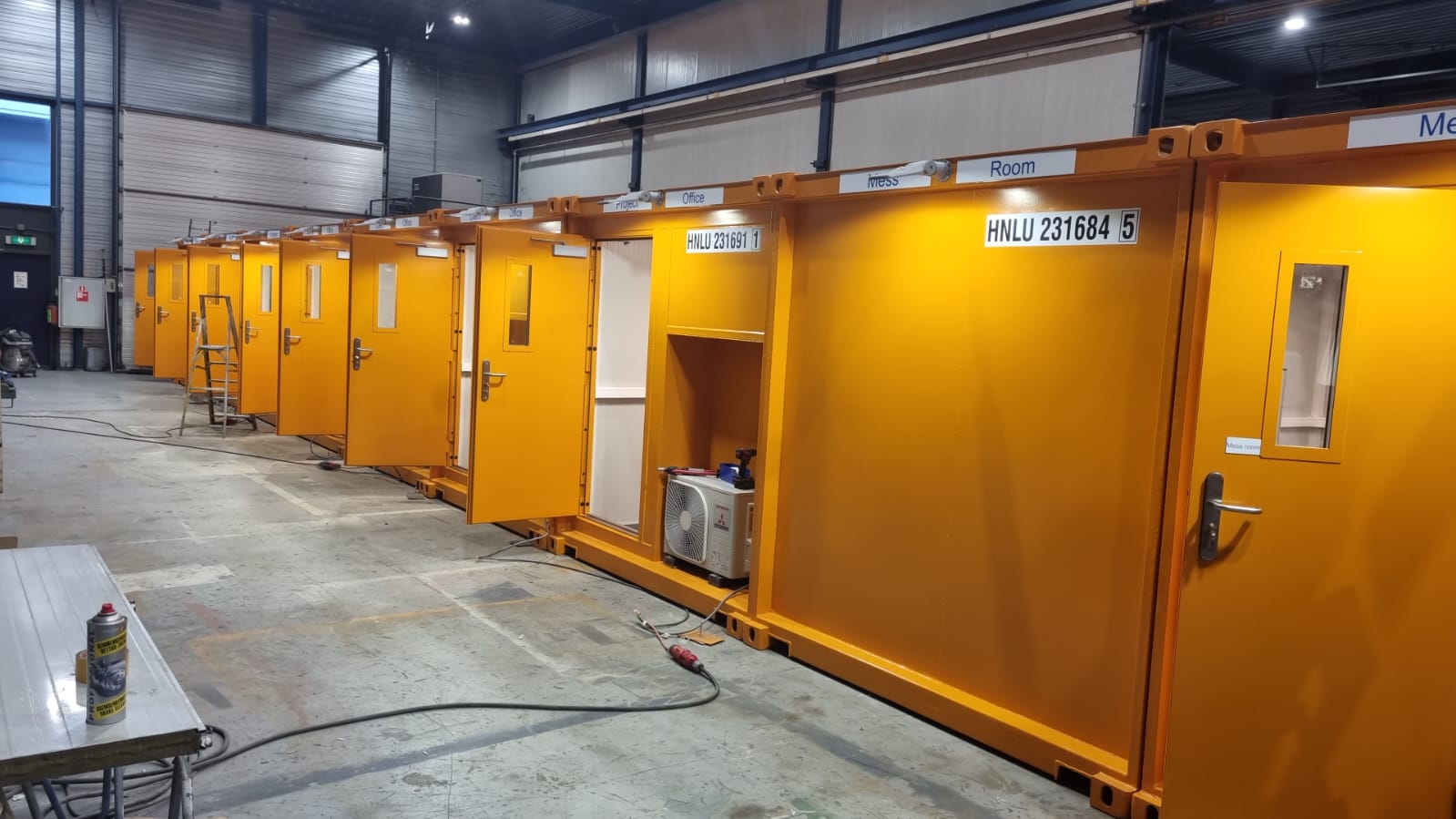 Ontdek de ultieme oplossing voor jouw offshore projecten met ons 9x20ft containercomplex, inclusief een praktisch bordes en een functioneel heli-deck. Dit complex is speciaal ontworpen om aan de strenge eisen van de offshore sector te voldoen, terwijl het ook de flexibiliteit biedt om naar eigen wensen aangepast te worden. Elk van de negen containers is uitgerust met hoogwaardige sandwichpanelen, een HCCP walastick vloer, en voorzien van alle benodigde faciliteiten zoals ramen, deuren, elektra, binnen- en buitenverlichting, airconditioning, en meterkasten. Daarnaast is er een keukenblok, een dames toilet, een douche unisex, heren toiletten, urinoirs, en wasbakken aanwezig om het comfort en gemak te verhogen.